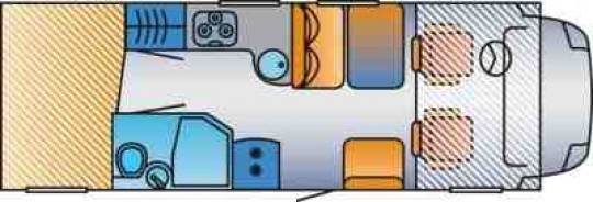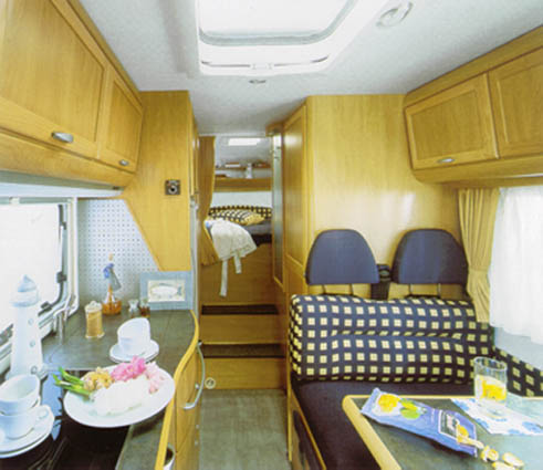 Das große Alkoven-Mobil für Familien oder Gruppen die viel Platz haben möchten. Mit 2 großen, fest eingebauten Doppelbetten im Alkoven und im Heck. Darunter befindet sich eine große Heckgarage als riesiger und sehr gut zugänglicher Außenstauraum.
