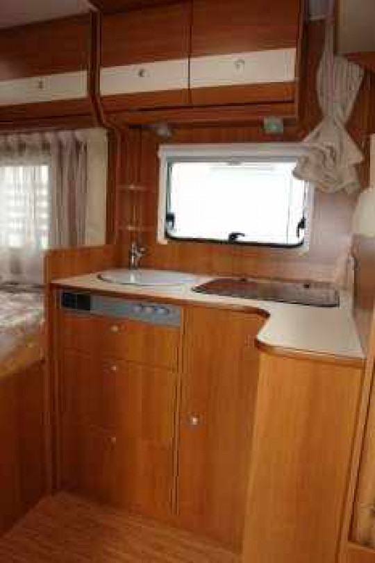 Küche mit 3-Flamm-Herd, Spüle und 3-Wege Kühlschrank