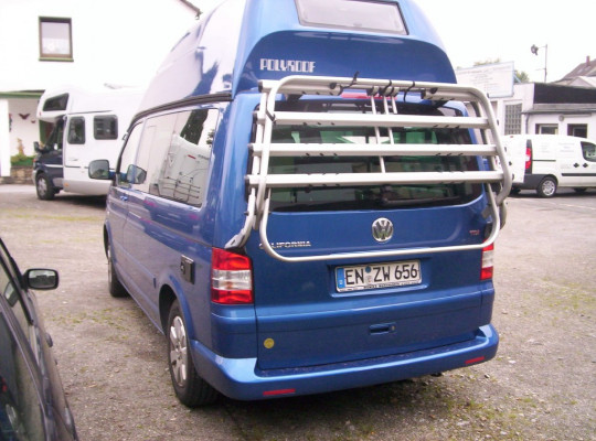| Equipped with: | Colour ravennablau metallic, seats art-grey Design Skala, 3-Zone-air condition “Climatronic” with extra Control panel the passenger compartment, original VOLKSWAGEN DVD navigation system with DVD Player, 6xCD change-over switch, additional Diesel powered furnace with remote and advance time set, Airbags, power lock with remote, outside mirrors heated and eletr. adjusted, CD radio, power windows, power assistance for rear door and sliding door, alloy wheels Miyato 6 1/2 Jx16, full spare wheel, additional Key, Diesel particle filter, double thermo windows in the rear and green heat protective glass in the front, leather steering wheel with leather part extent, cellphone-hands-free preparation, if desired for extra price: bicycle-porter at the rear or awning |